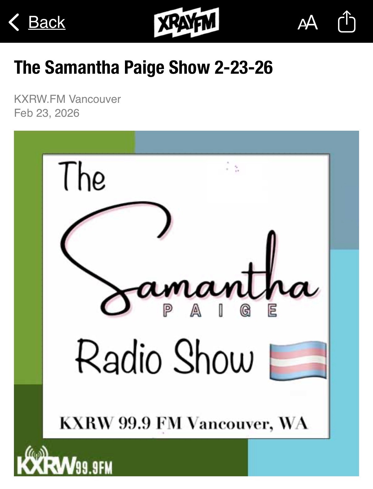 Episode 002:Samantha Paige (she/they)Feb 24, 20261232Sharehttps://kxrw.fm/the-samantha-paige-show-02-23-26/PreviousNext